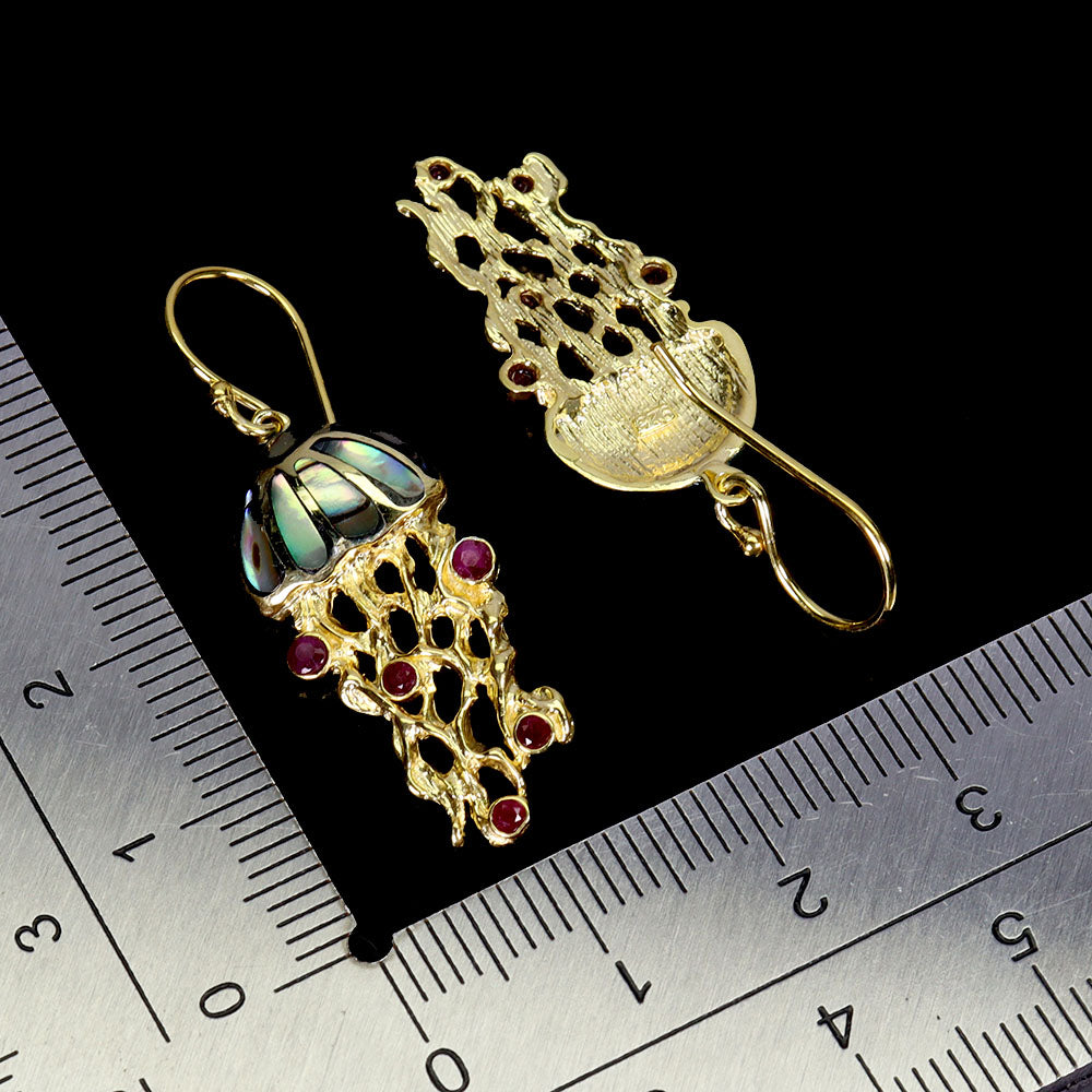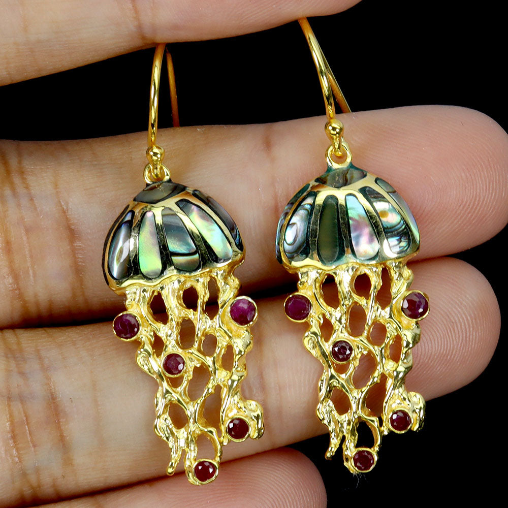 925 Sterling Silver Earrings Round Ruby Mop Jellyfish Gemstone Jewelry