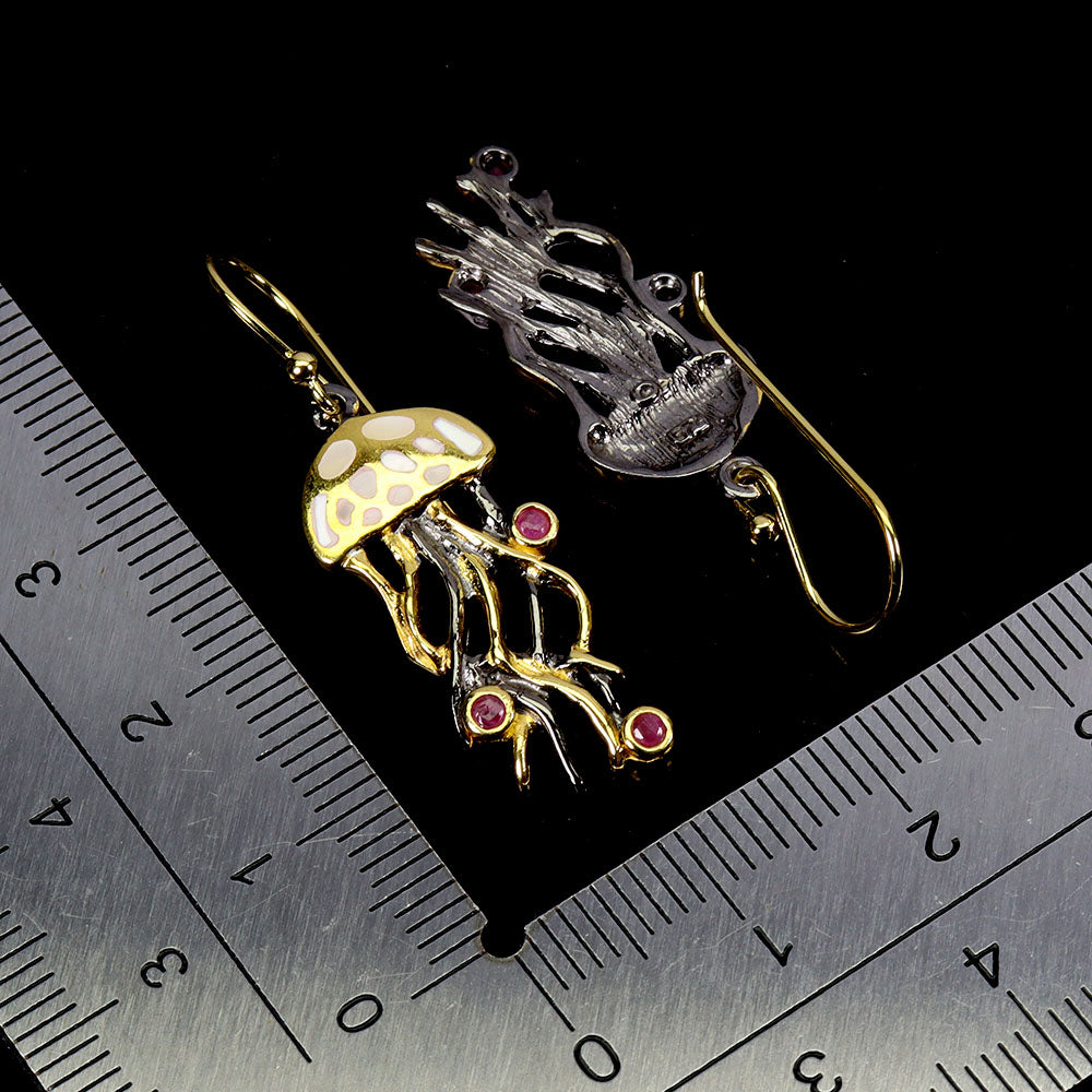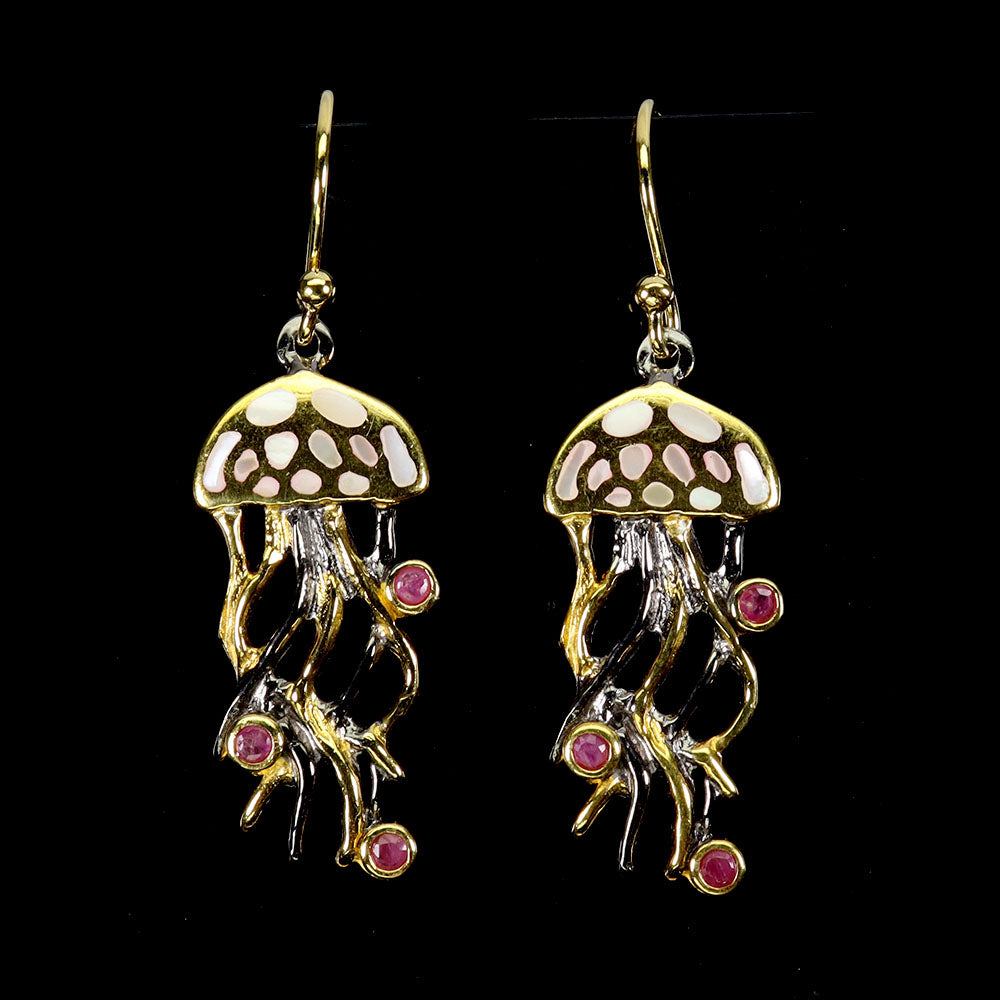 925 Sterling Silver Earrings Round Ruby Myanmar Mop Jellyfish Gemstone Jewelry
