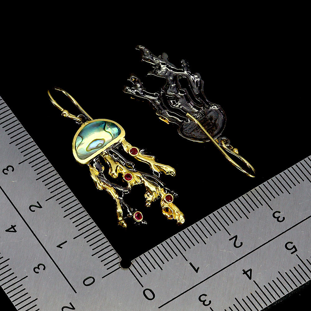925 Sterling Silver Earrings Round Ruby Myanmar Mop Jellyfish Gemstone Jewelry