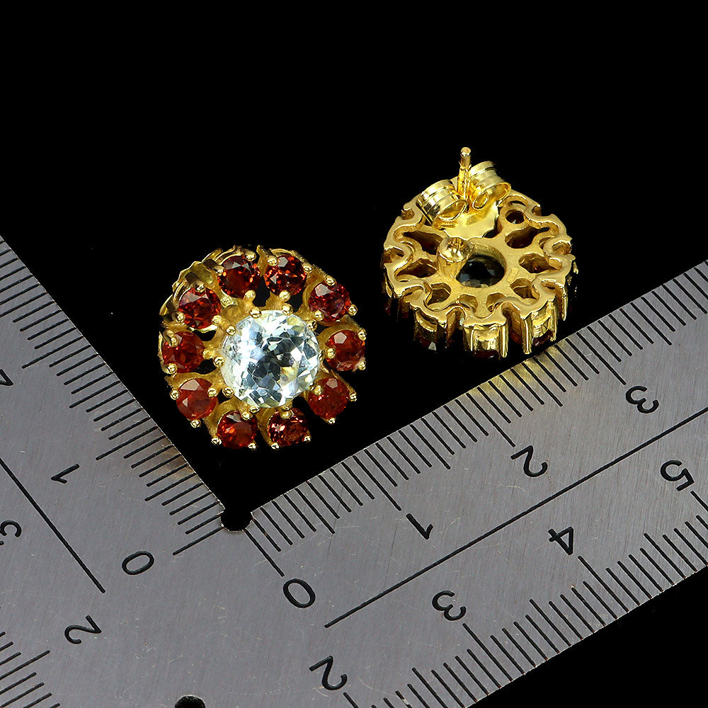 925 Sterling Silver Earrings Round Sky Topaz 7mm Mozambique Gemstone Jewelry