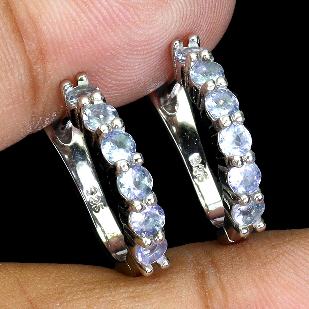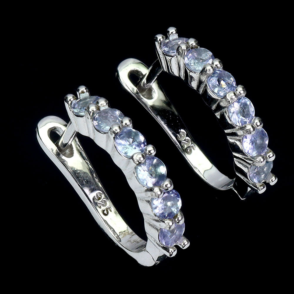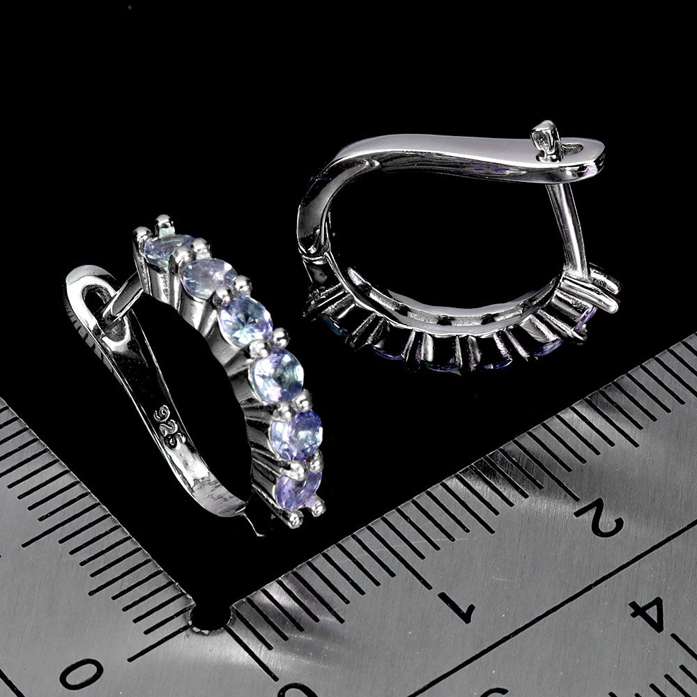 925 Sterling Silver Earrings Round Tanzanite Natural Gemstone Jewelry