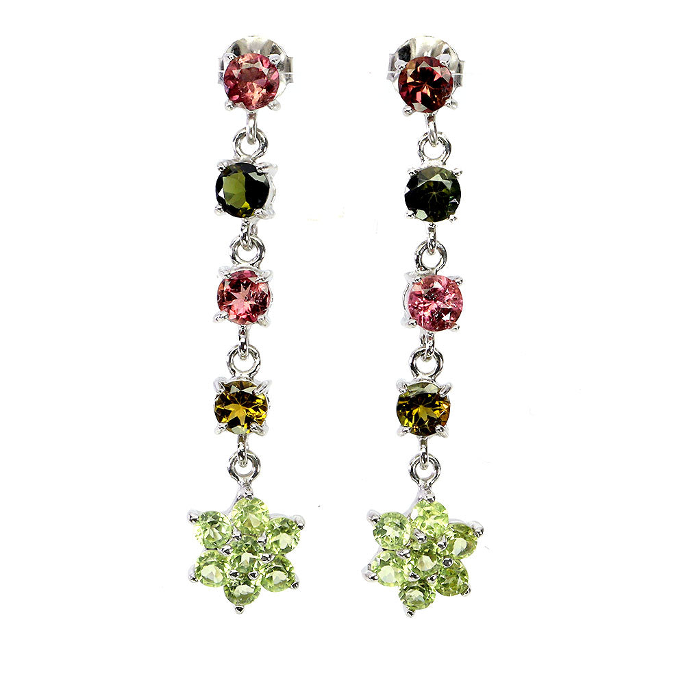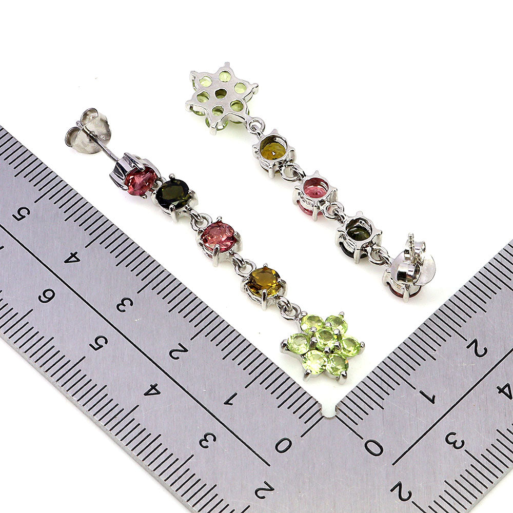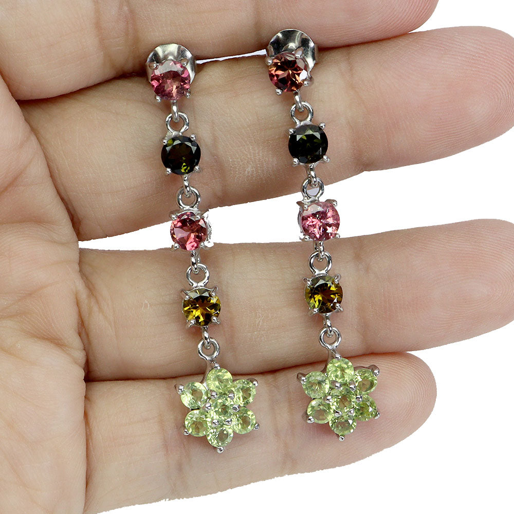 925 Sterling Silver Earrings Round Tourmaline Peridot Flower Gemstone Jewelry