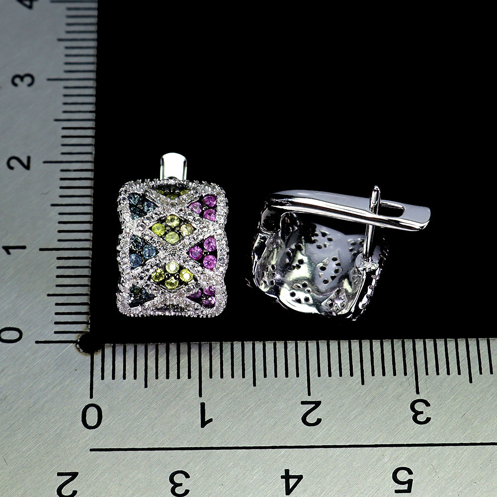925 Sterling Silver Earrings Sapphire Round Diamond Cut Topaz Gemstone Jewelry
