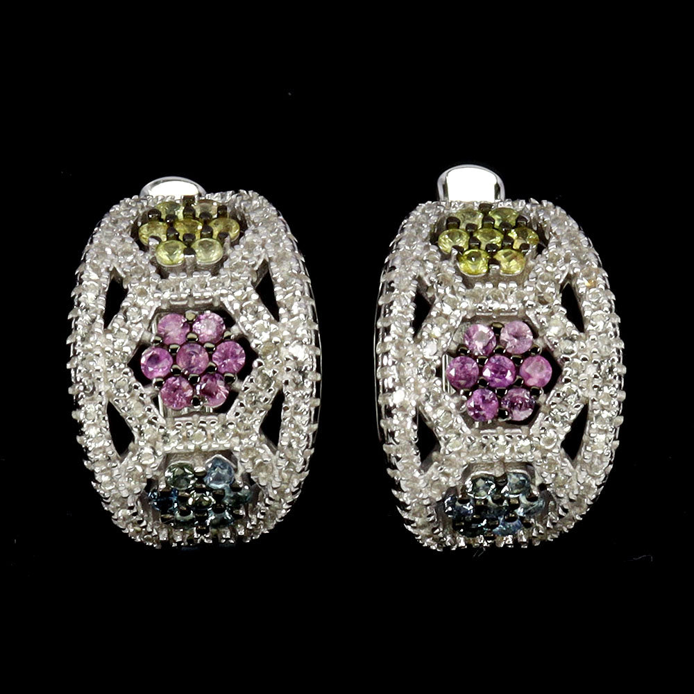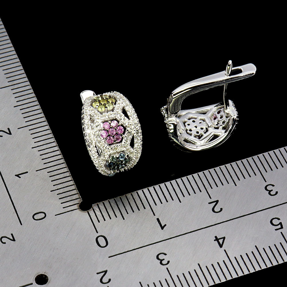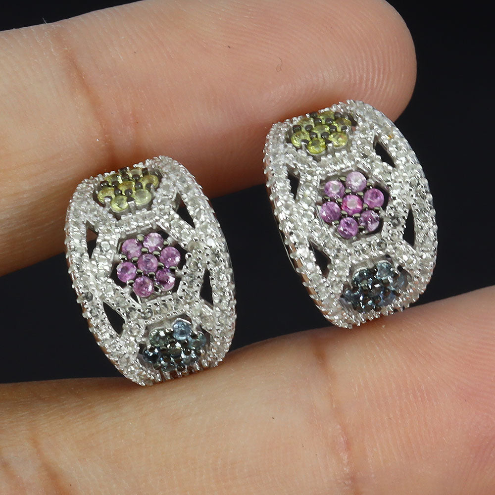 925 Sterling Silver Earrings Sapphire Round Diamond Cut Topaz Gemstone Jewelry