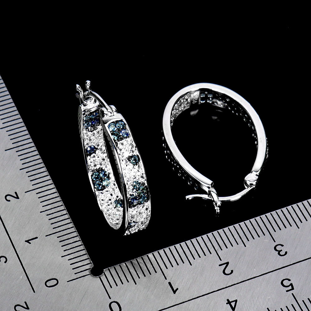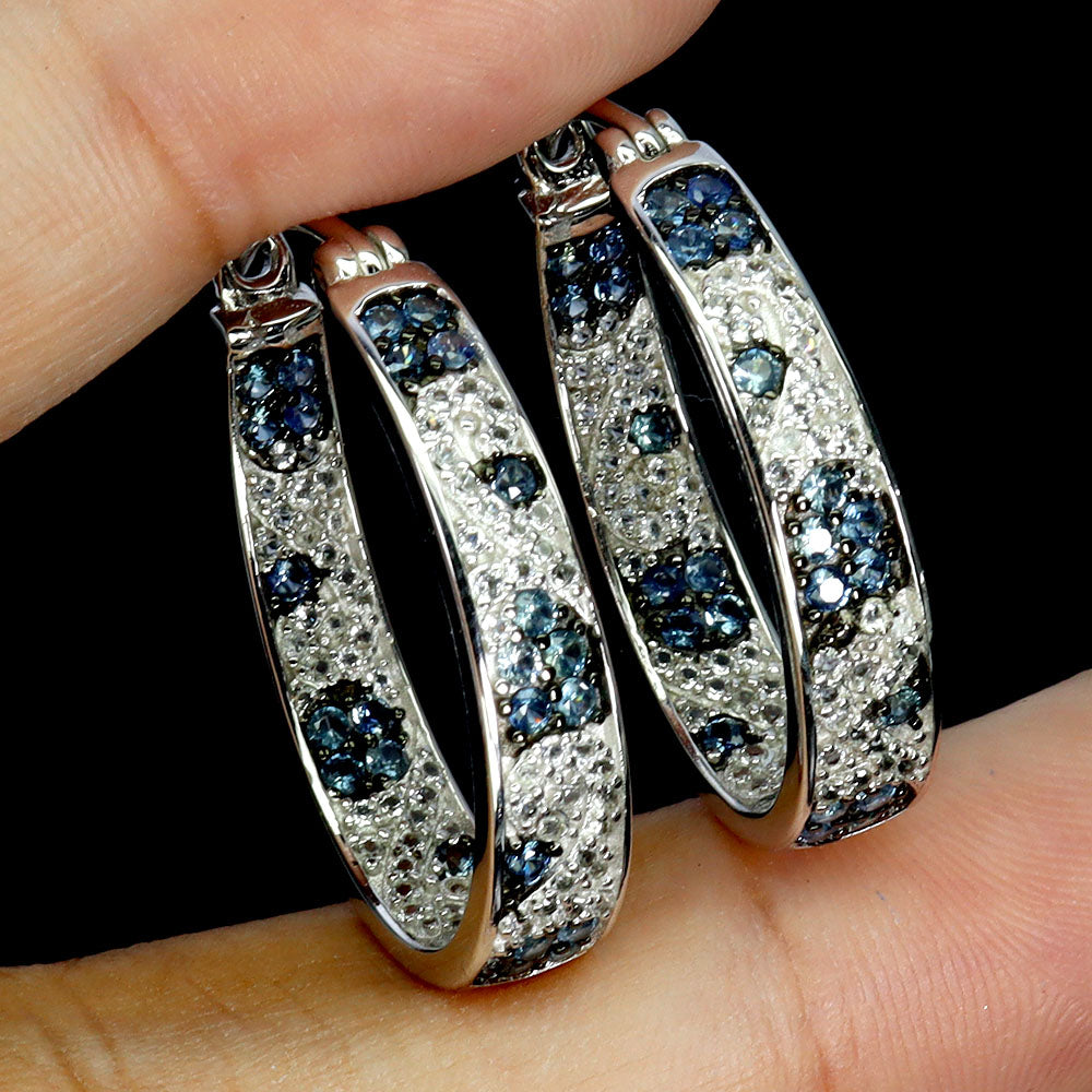 925 Sterling Silver Earrings Sapphire Round Diamond Cut White Topaz Gemstone