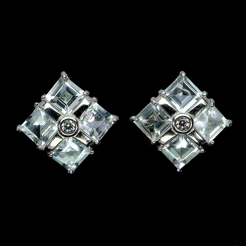 925 Sterling Silver Earrings Square Aquamarine 4mm Natural Gemstone Jewelry