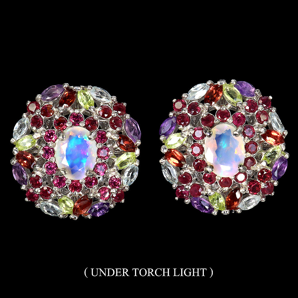 Unheated Oval Fire Opal 8x6mm Amethyst Peridot Gems 925 Sterling Silver Earrings
