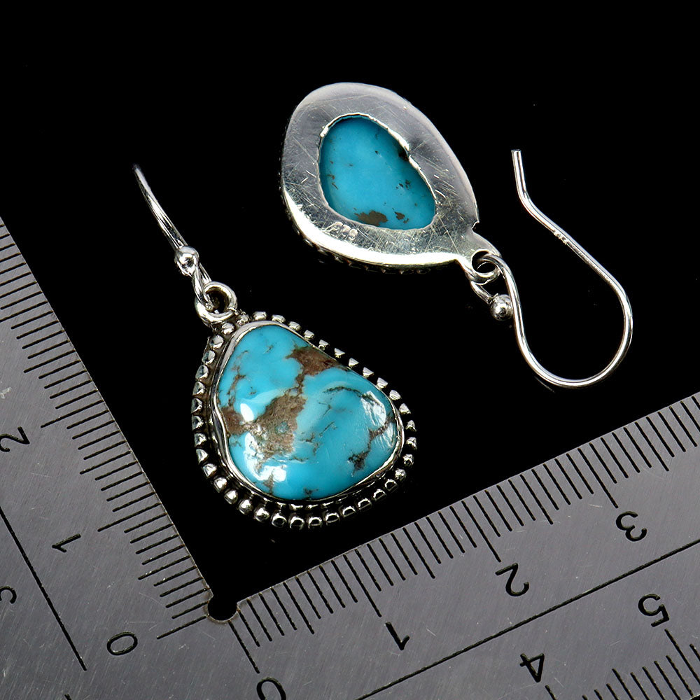 925 Sterling Silver Earrings Fancy Turquoise 14x12mm Handmade Gemstone Jewelry