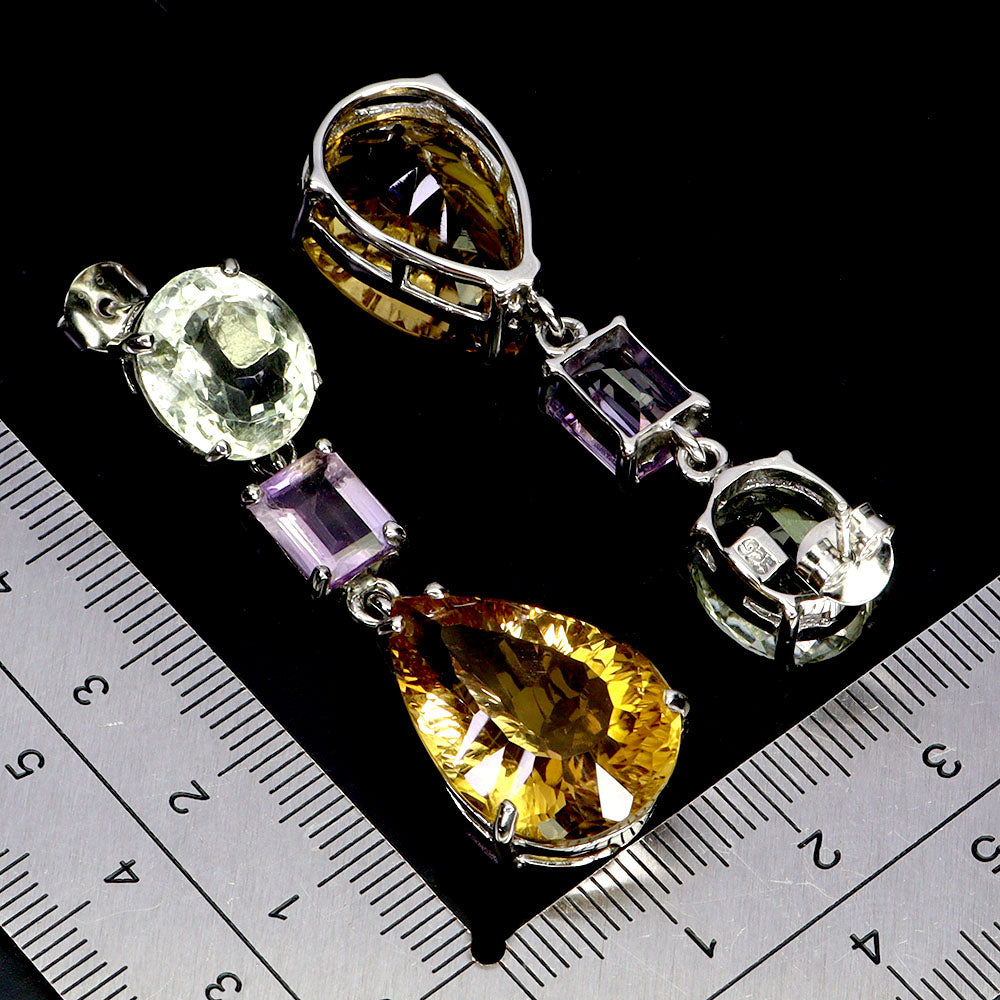 925 Sterling Silver Earrings Pear Citrine 50ct Amethyst Handmade Gemstone