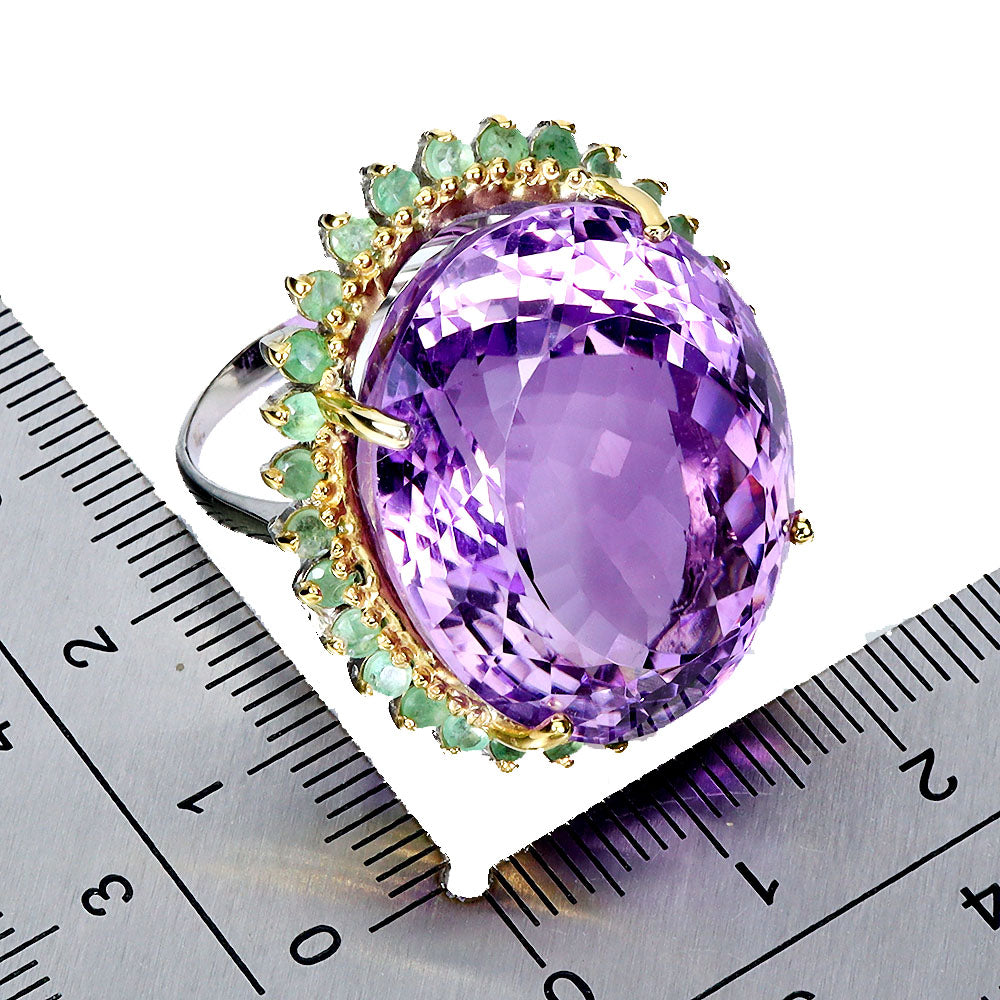925 Sterling Silver Ring Oval Amethyst 56ct Emerald Handmade Gemstone Jewelry 9