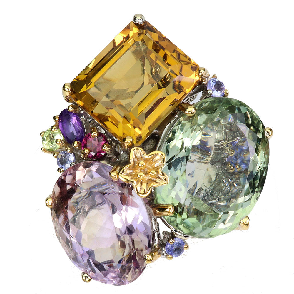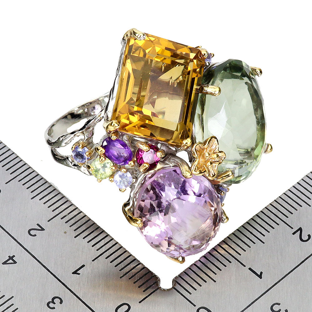 925 Sterling Silver Ring Oval Green Amethyst 48ct Citrine Handmade Gemstone 8