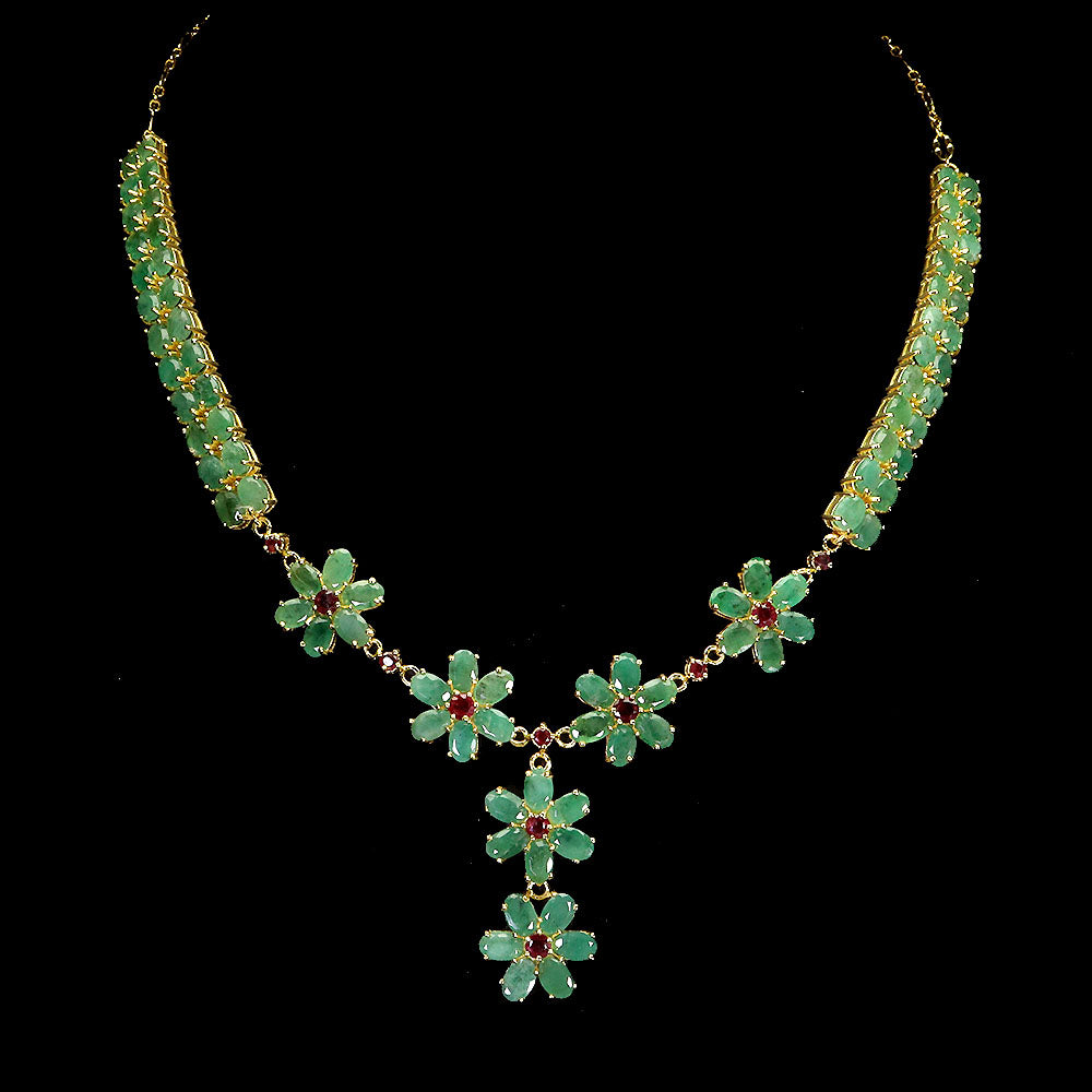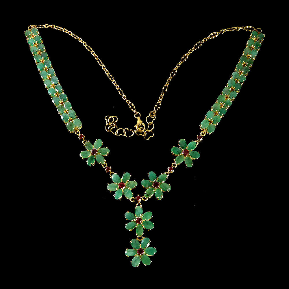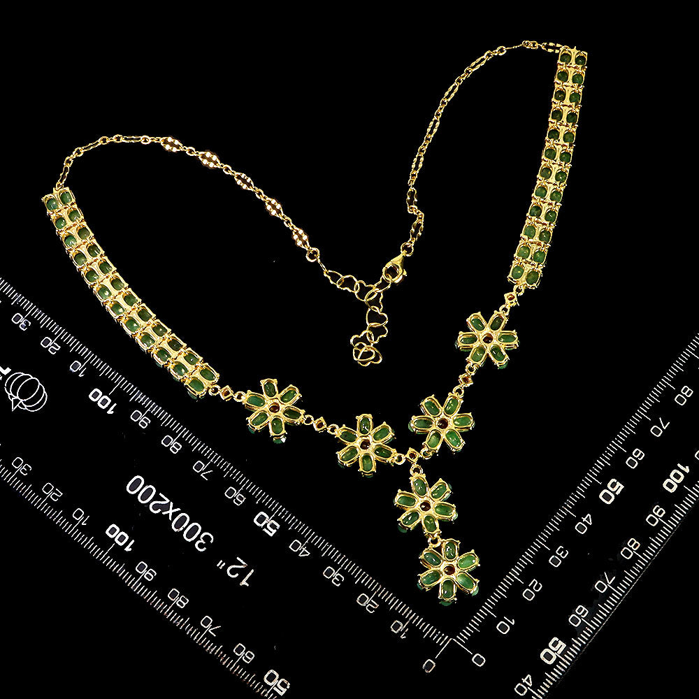 925 Sterling Silver Necklace Oval Emerald 6x4mm Ruby Flower Gemstone Jewelry 17