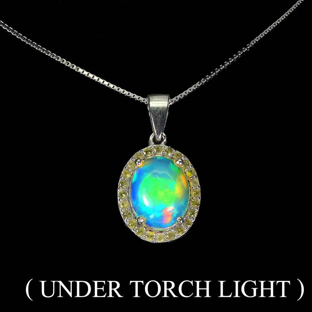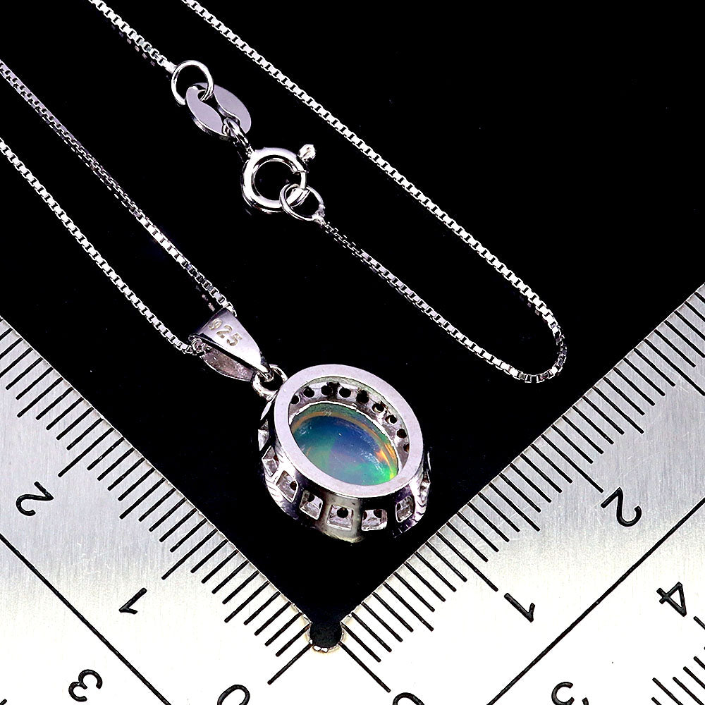925 Sterling Silver Necklace Oval Fire Opal 10x8mm Sapphire Gemstone 17.5inches