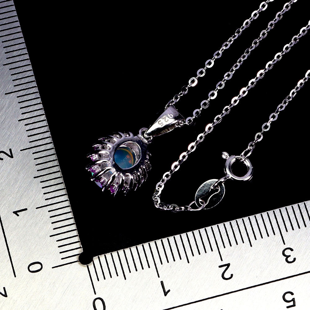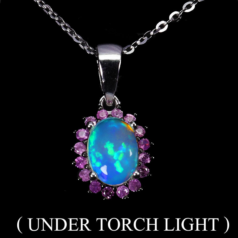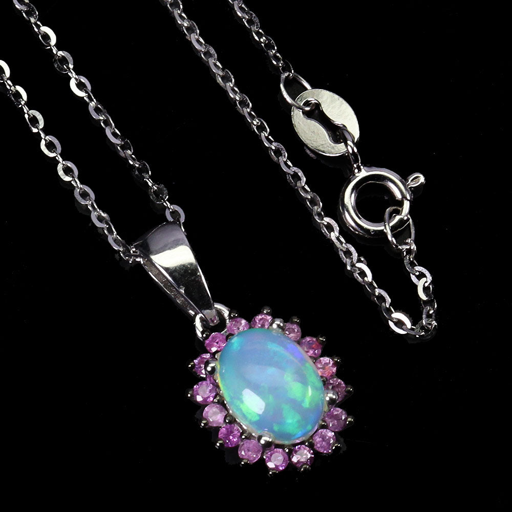 925 Sterling Silver Necklace Oval Fire Opal 8x6mm Sapphire Gemstone Jewelry 18in