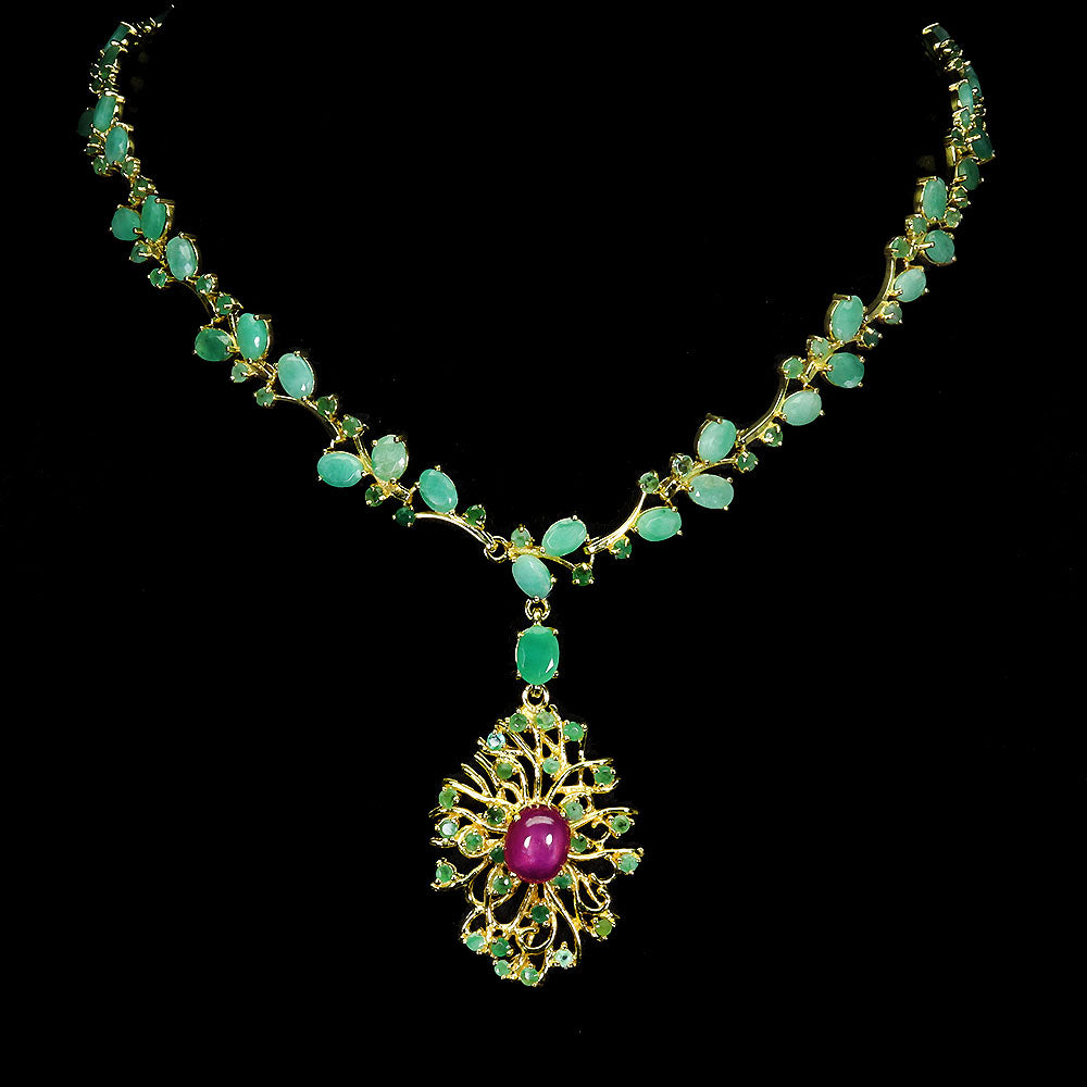 925 Sterling Silver Necklace Oval Ruby 10x8mm Emerald Gemstone Jewelry 18inches