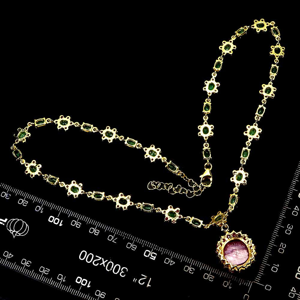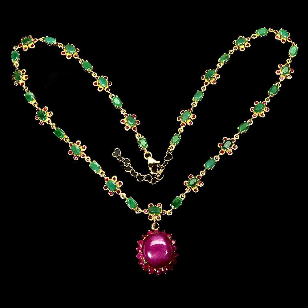 925 Sterling Silver Necklace Oval Ruby 16x14mm Emerald Gemstone Jewelry 18 Inch