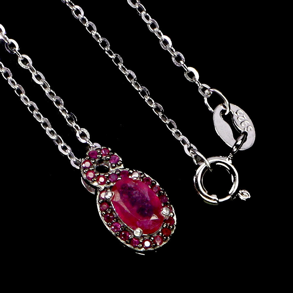925 Sterling Silver Necklace Oval Ruby 6x4mm Ruby Diamond Cut Gemstone 18inches