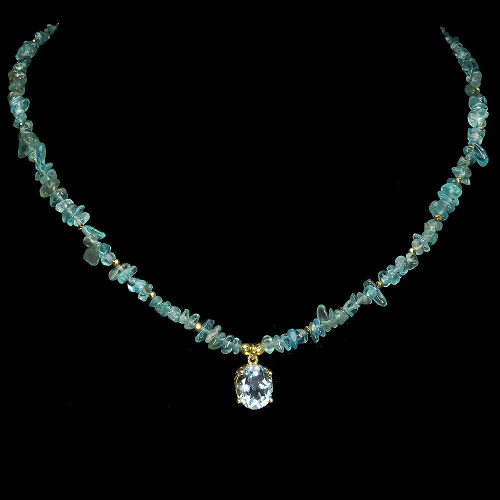 925 Sterling Silver Necklace Oval Sky Blue Topaz 11x9mm Apatite Gemstone 17in