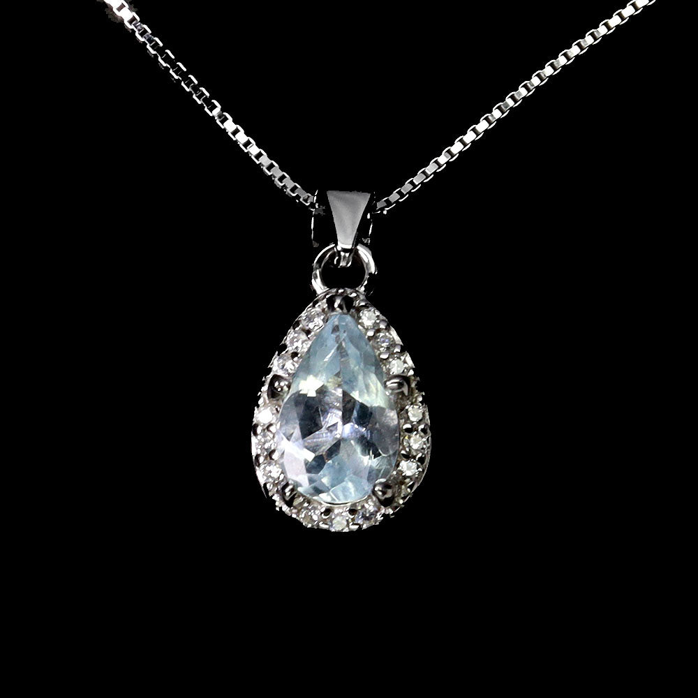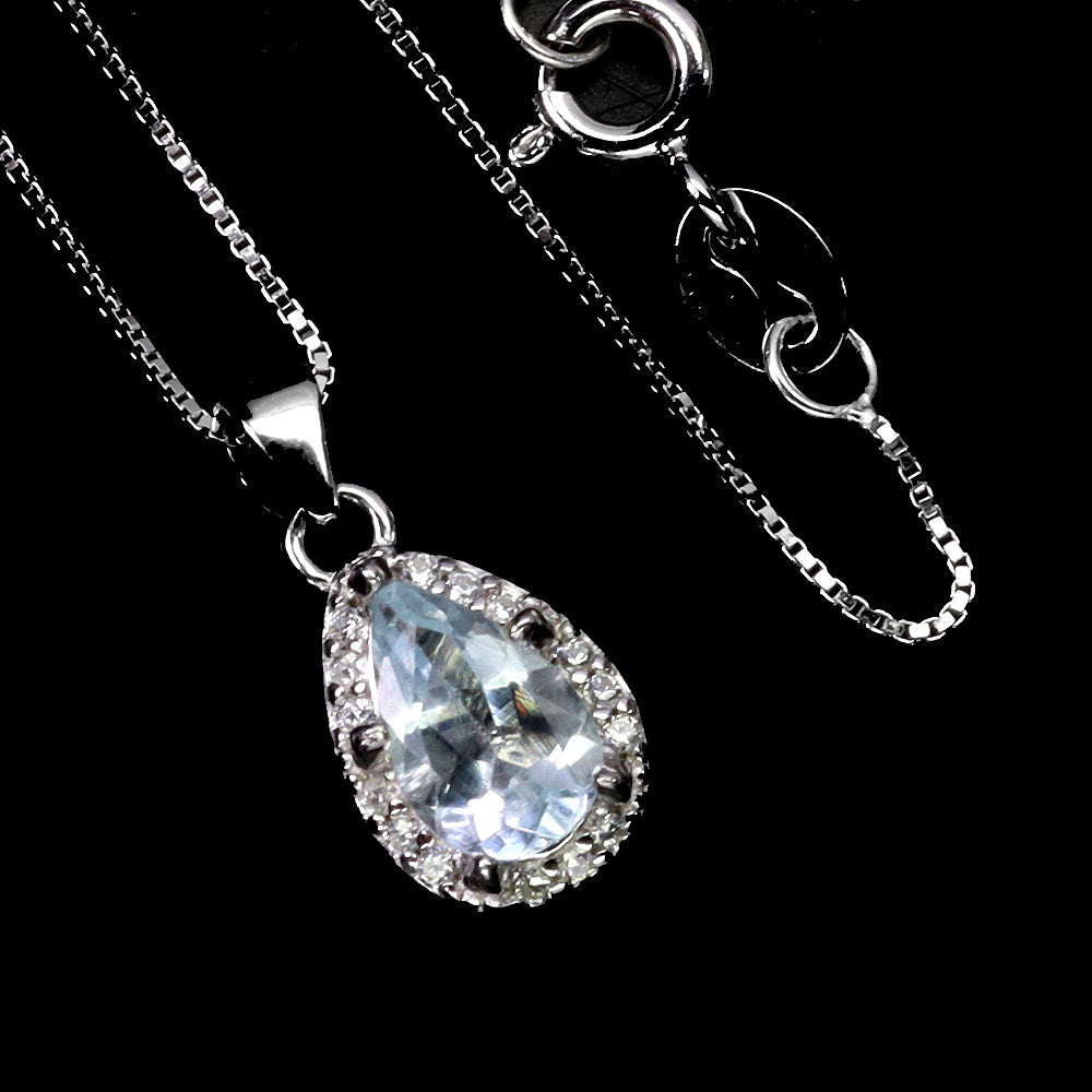 925 Sterling Silver Necklace Pear Aquamarine 7x5mm Gemstone Jewelry 18inches
