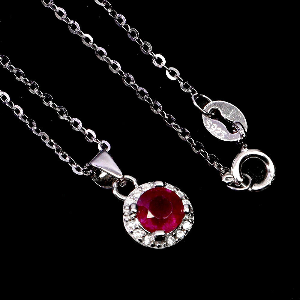 925 Sterling Silver Necklace Round Ruby 5mm Natural Gemstone Jewelry 18inches