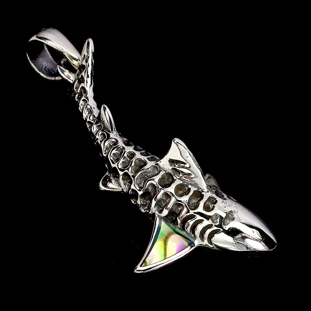 925 Sterling Silver Pendant Fancy Mother Of Pearl Shark Natural Gemstone Jewelry