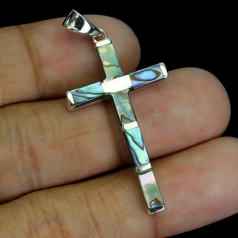 925 Sterling Silver Pendant Octagon Mother Of Pearl Cross Gemstone Jewelry