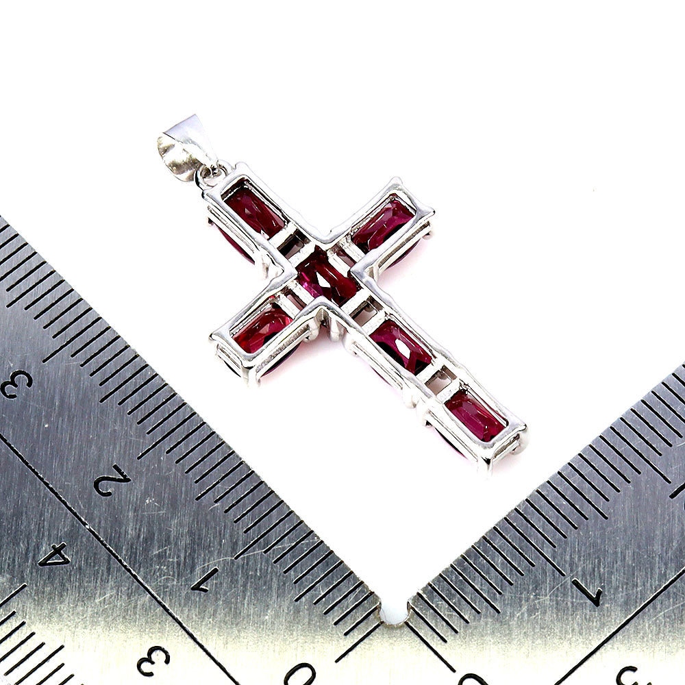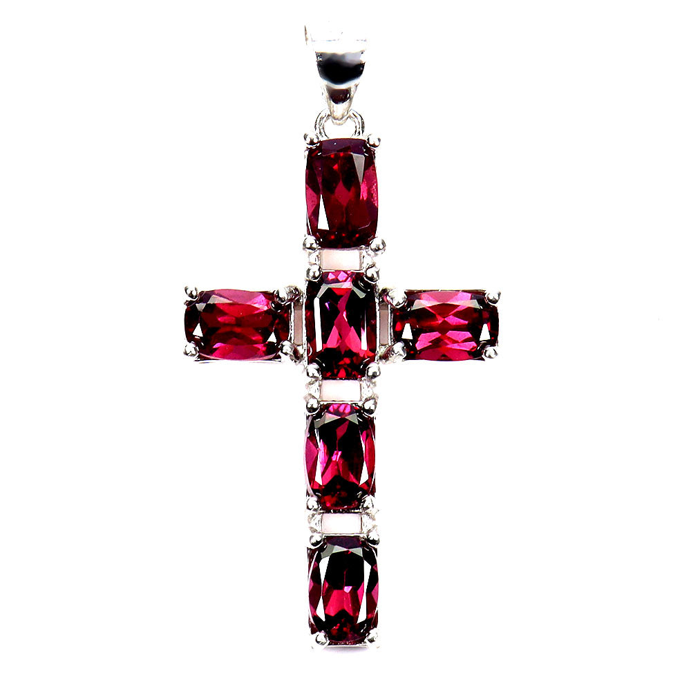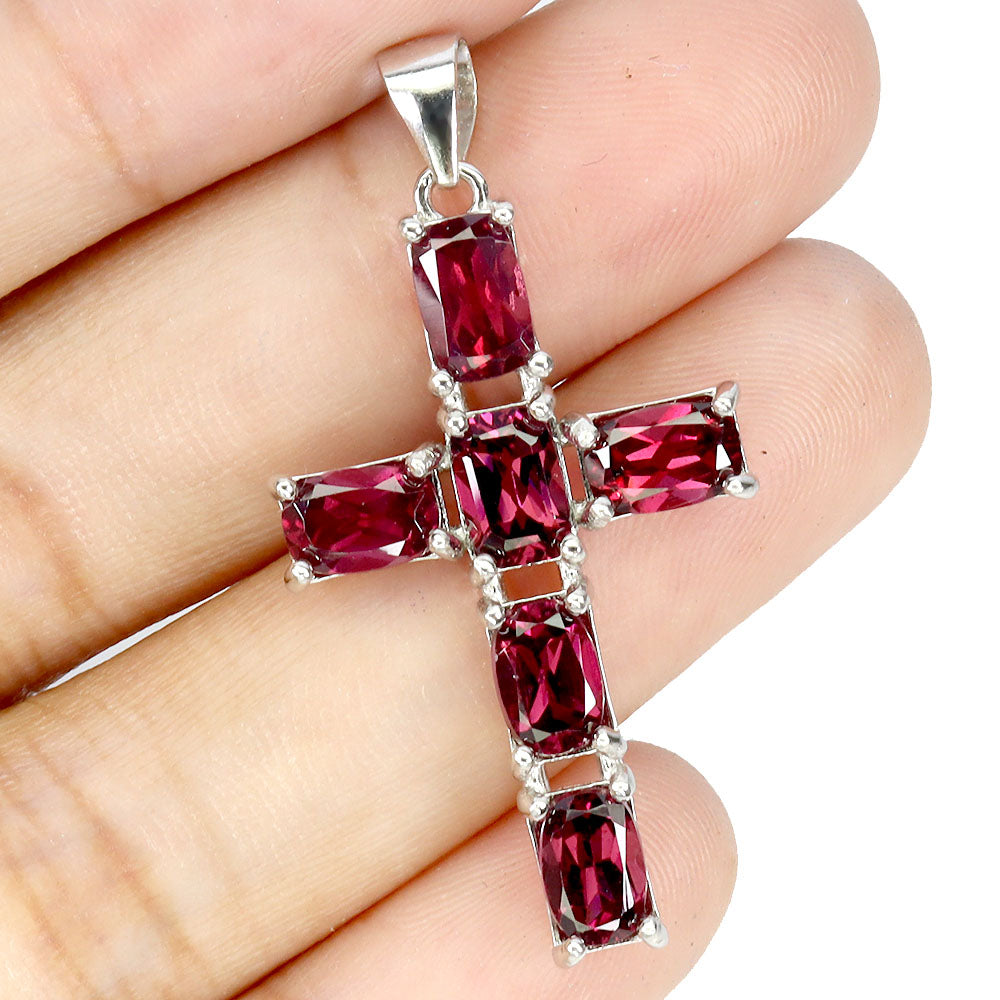 925 Sterling Silver Pendant Octagon Rhodolite 6x4mm Cross Gemstone Jewelry
