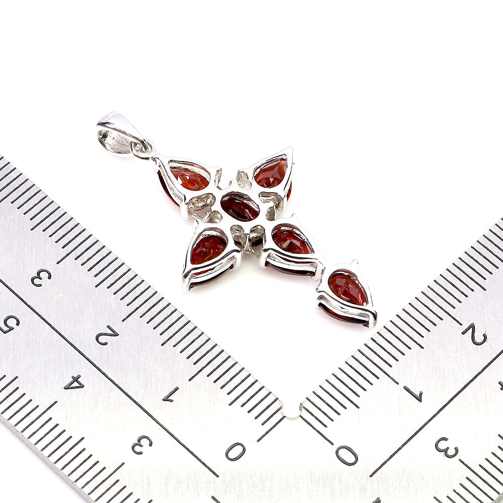 925 Sterling Silver Pendant Oval Mozambique Garnet 7x5mm Cross Gemstone Jewelry