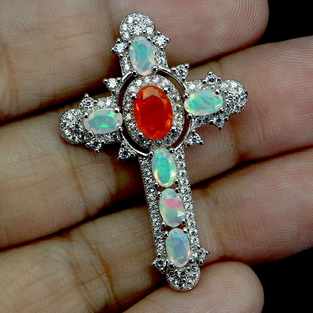 925 Sterling Silver Pendant Oval Orange Opal 7x5mm Fire Opal Gemstone Jewelry