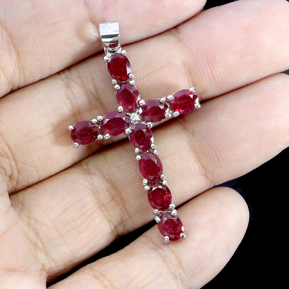 925 Sterling Silver Pendant Oval Ruby 5x4mm Cross Natural Gemstone Jewelry