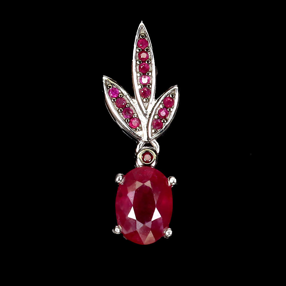 925 Sterling Silver Pendant Oval Ruby 7x5mm Ruby Myanmar Diamond Cut Gemstone