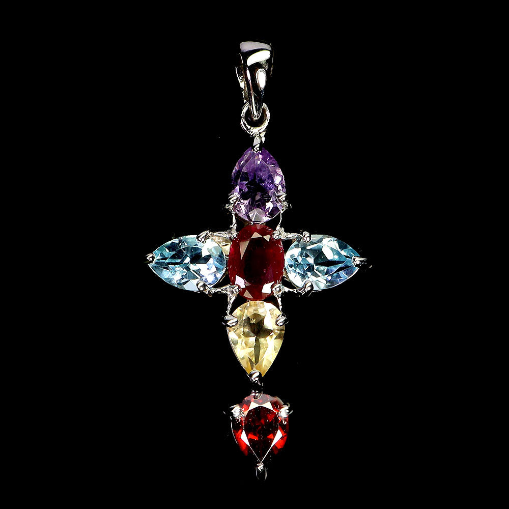 925 Sterling Silver Pendant Oval Ruby Amethyst Citrine Cross Gemstone Jewelry
