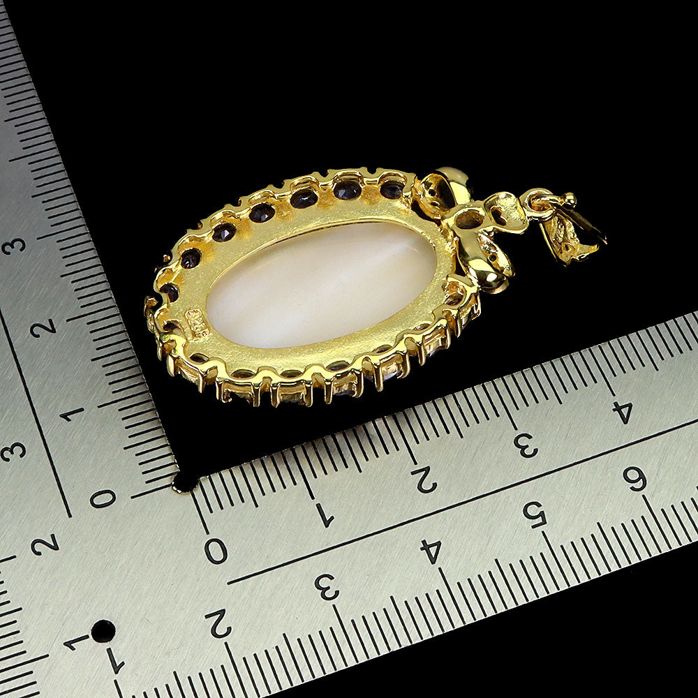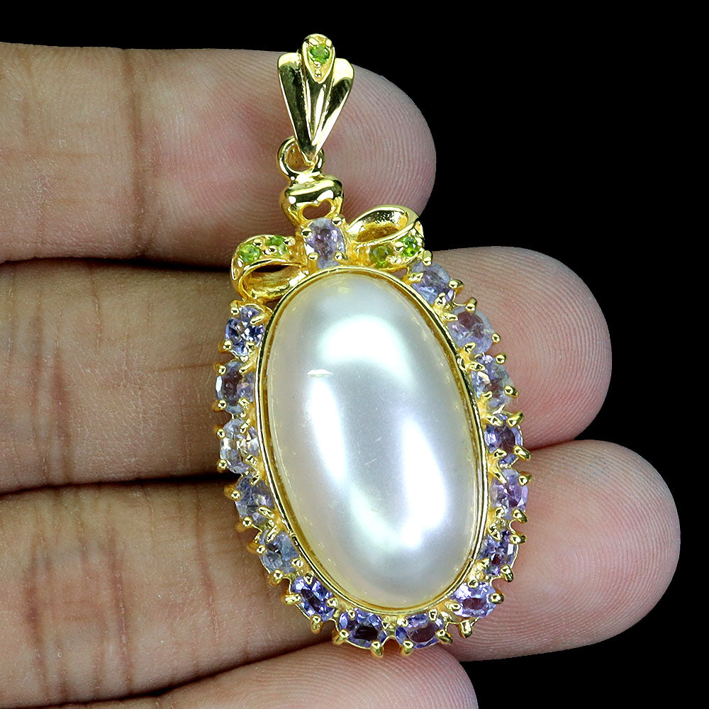 925 Sterling Silver Pendant Oval Tanzanite 4x3mm Chrome Diopside Pearl Gemstone