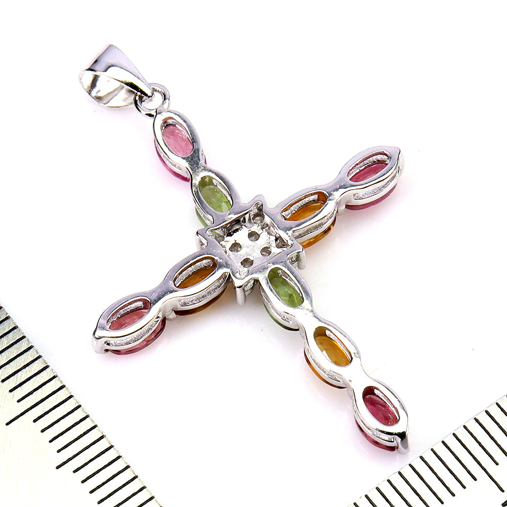 925 Sterling Silver Pendant Oval Tourmaline 5x3mm Cross Gemstone Jewelry