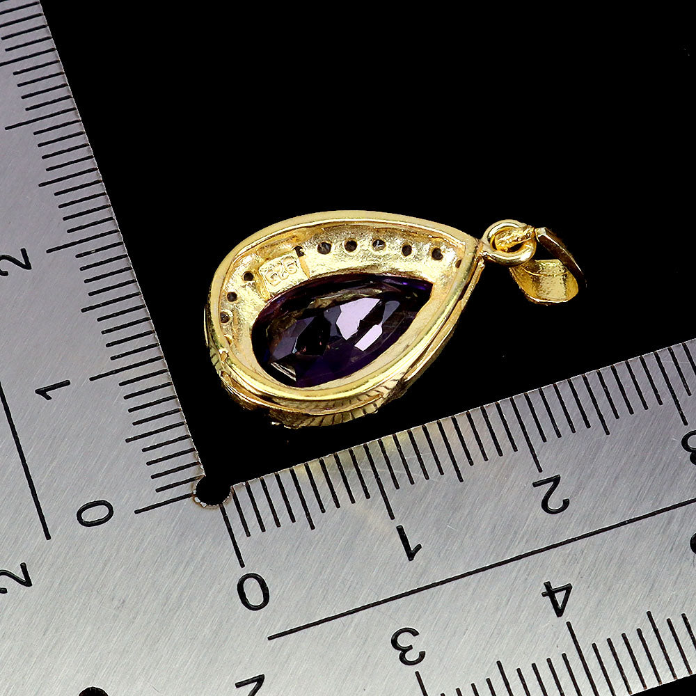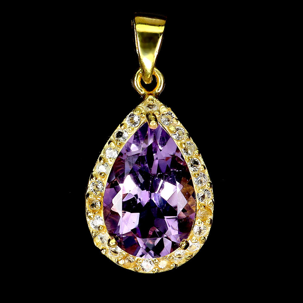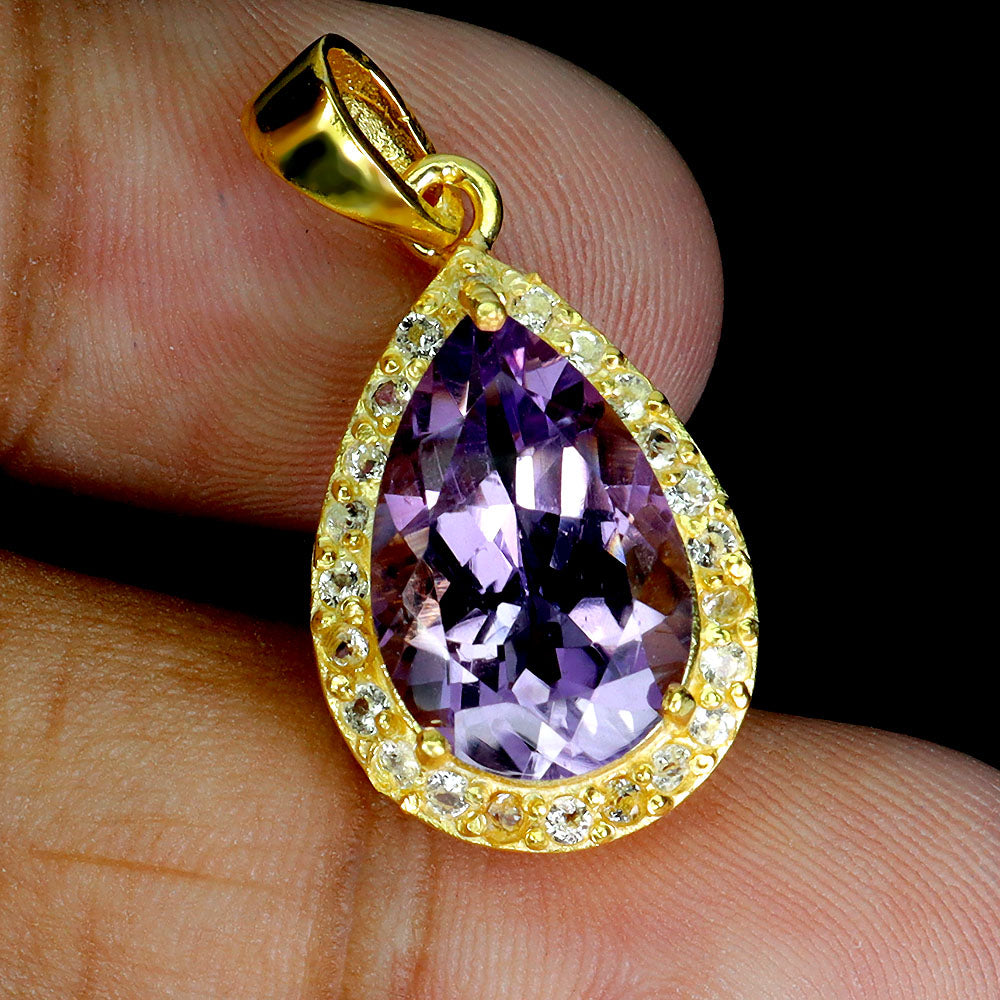 925 Sterling Silver Pendant Pear Amethyst 15x10mm White Topaz Gemstone Jewelry