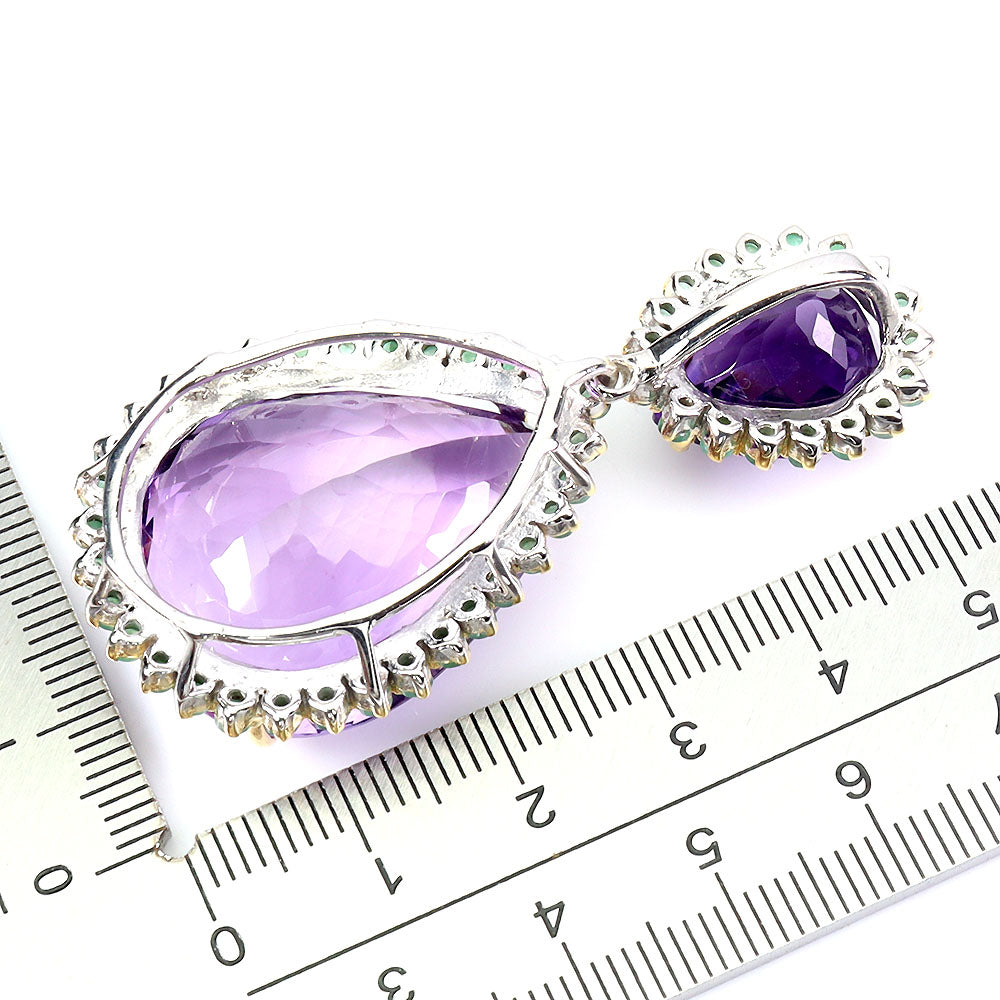 925 Sterling Silver Pendant Pear Amethyst 64ct Emerald Handmade Gemstone Jewelry