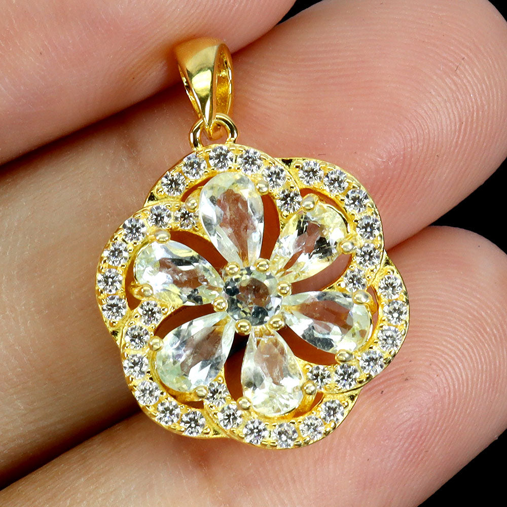 925 Sterling Silver Pendant Pear Aquamarine 5x3mm Flower Gemstone Jewelry