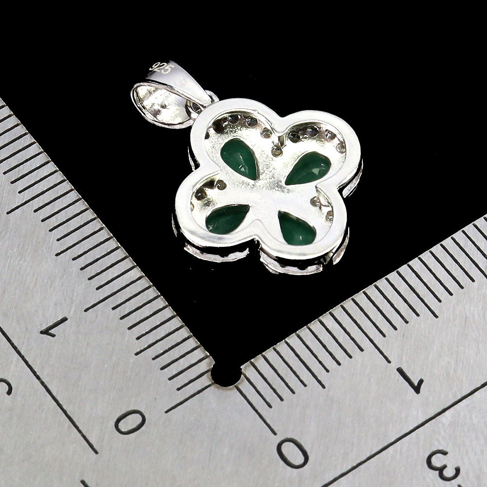 925 Sterling Silver Pendant Pear Emerald 6x4mm Flower Natural Gemstone Jewelry