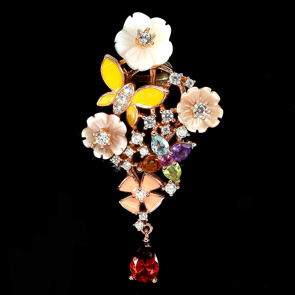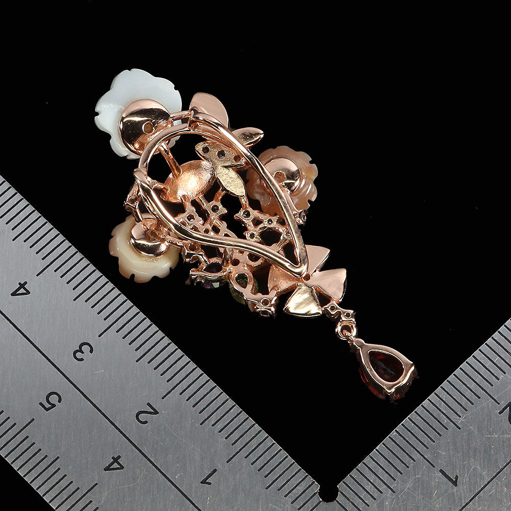 925 Sterling Silver Pendant Pear Rhodolite Garnet Topaz 7x5mm Mop Gemstone