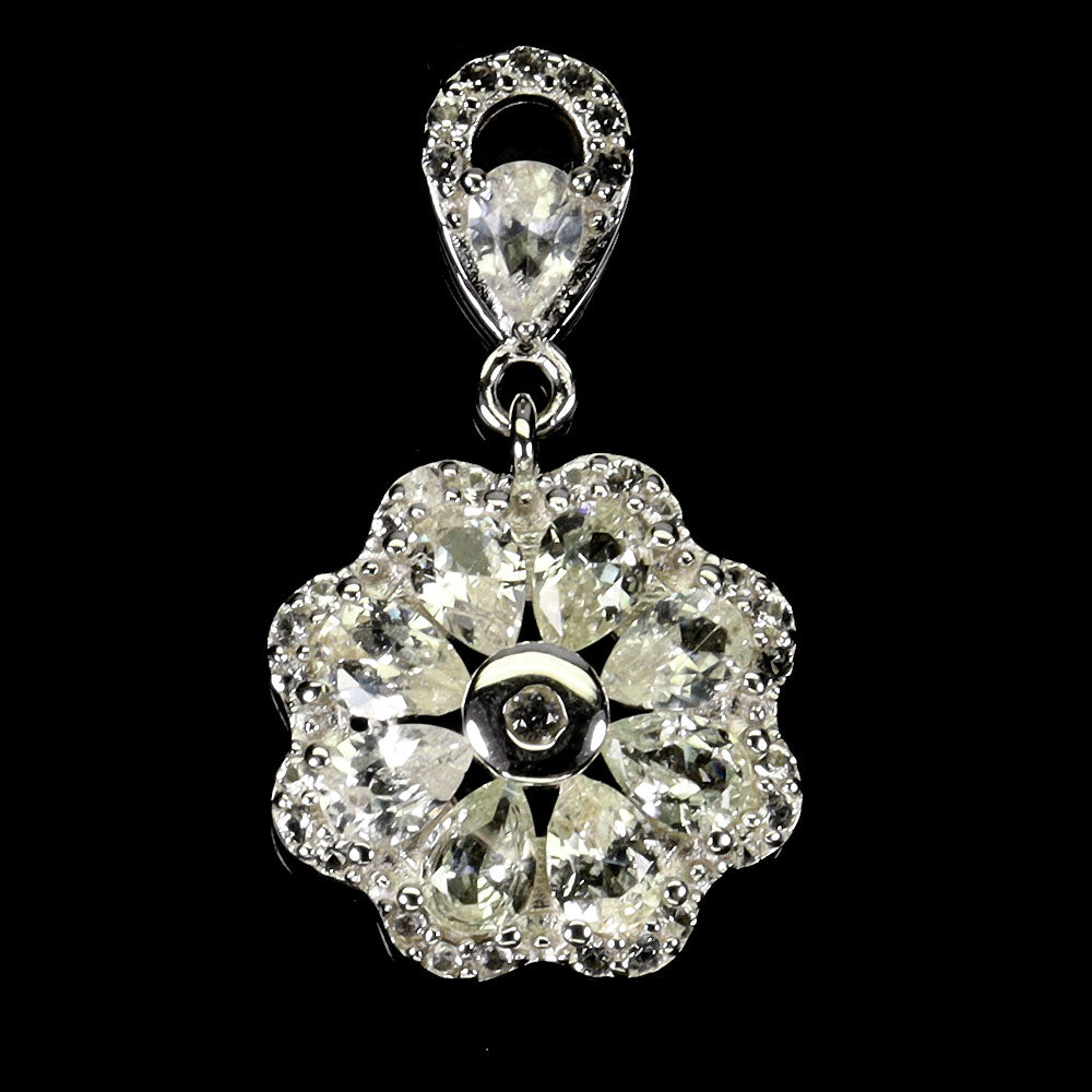 925 Sterling Silver Pendant Pear White Sapphire Ceylon 4x3mm Gemstone Jewelry