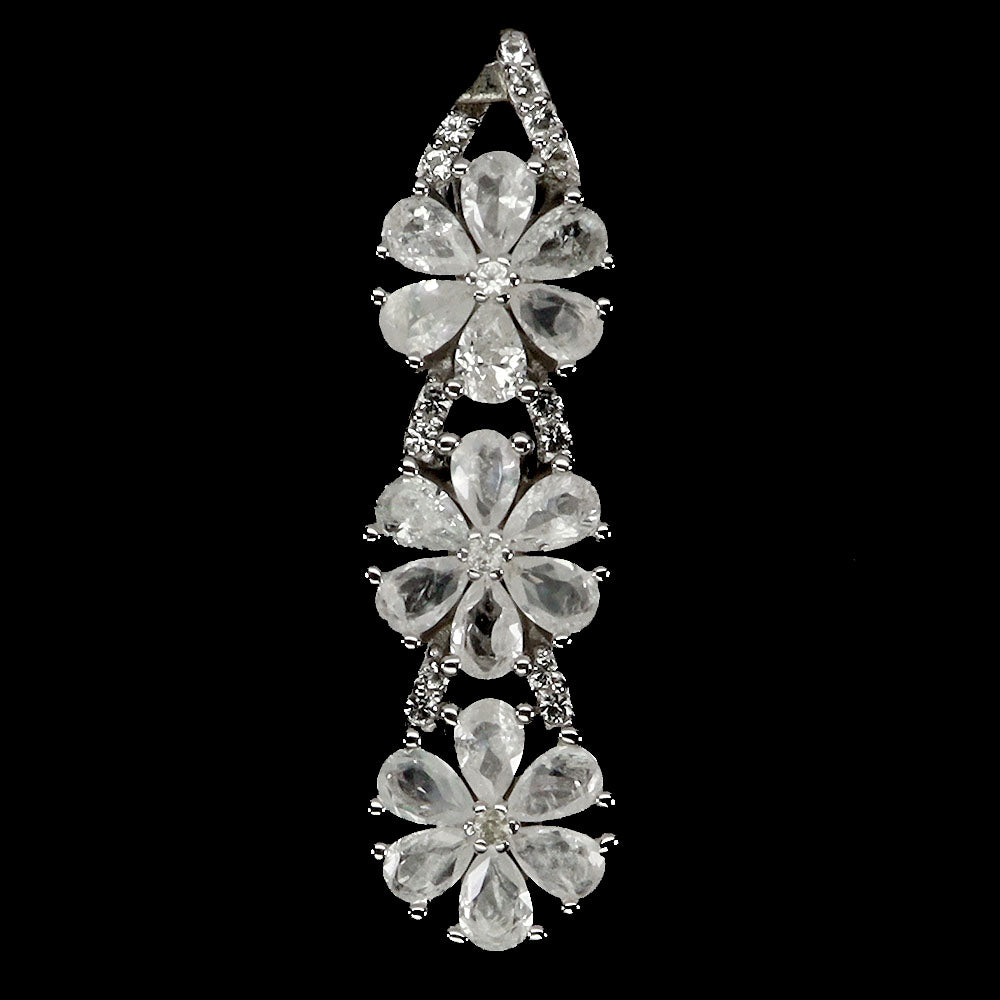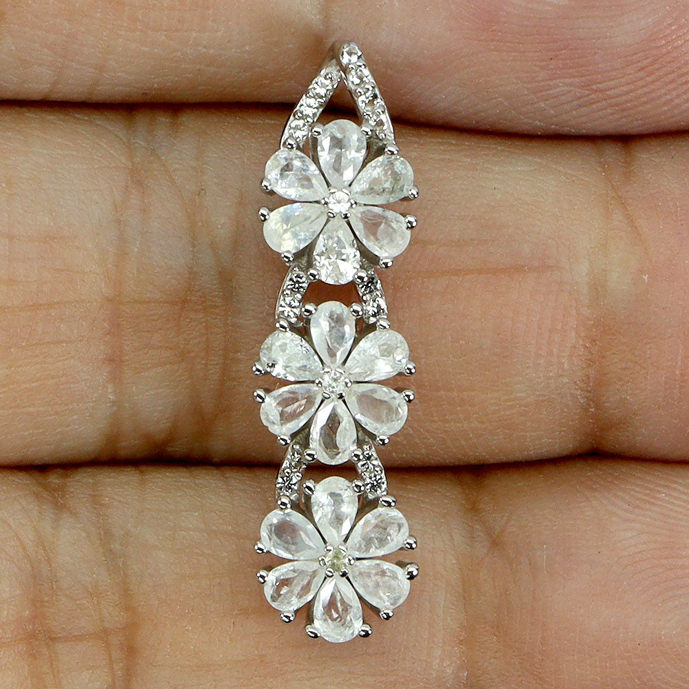 925 Sterling Silver Pendant Pear White Sapphire Ceylon Natural Gemstone Jewelry