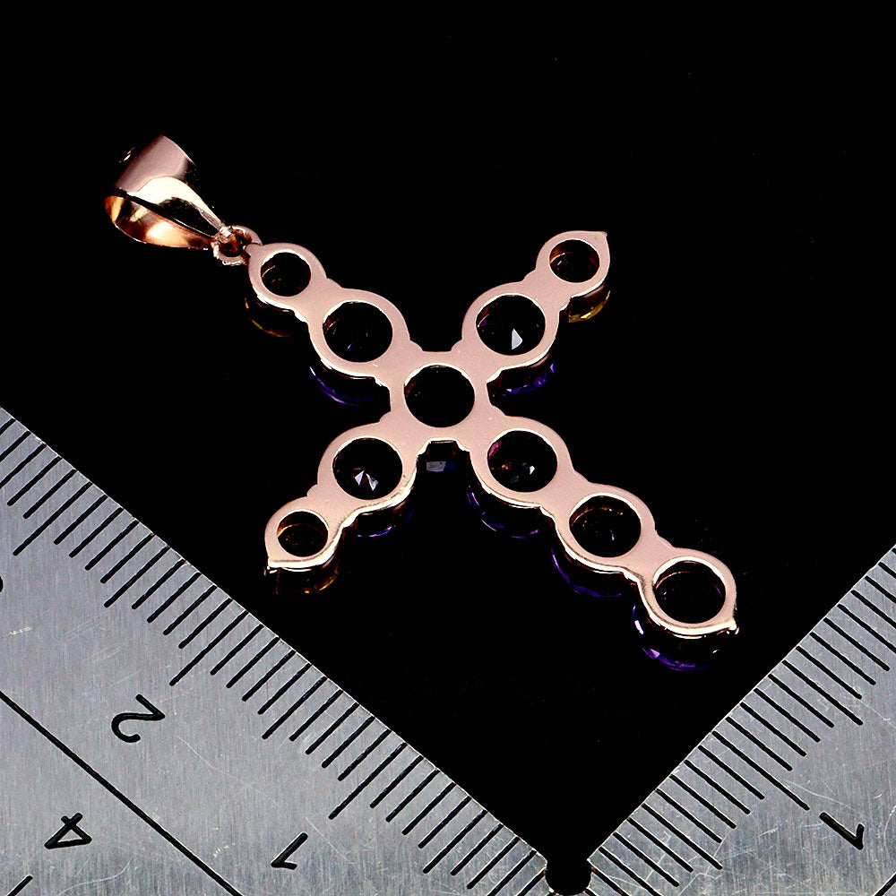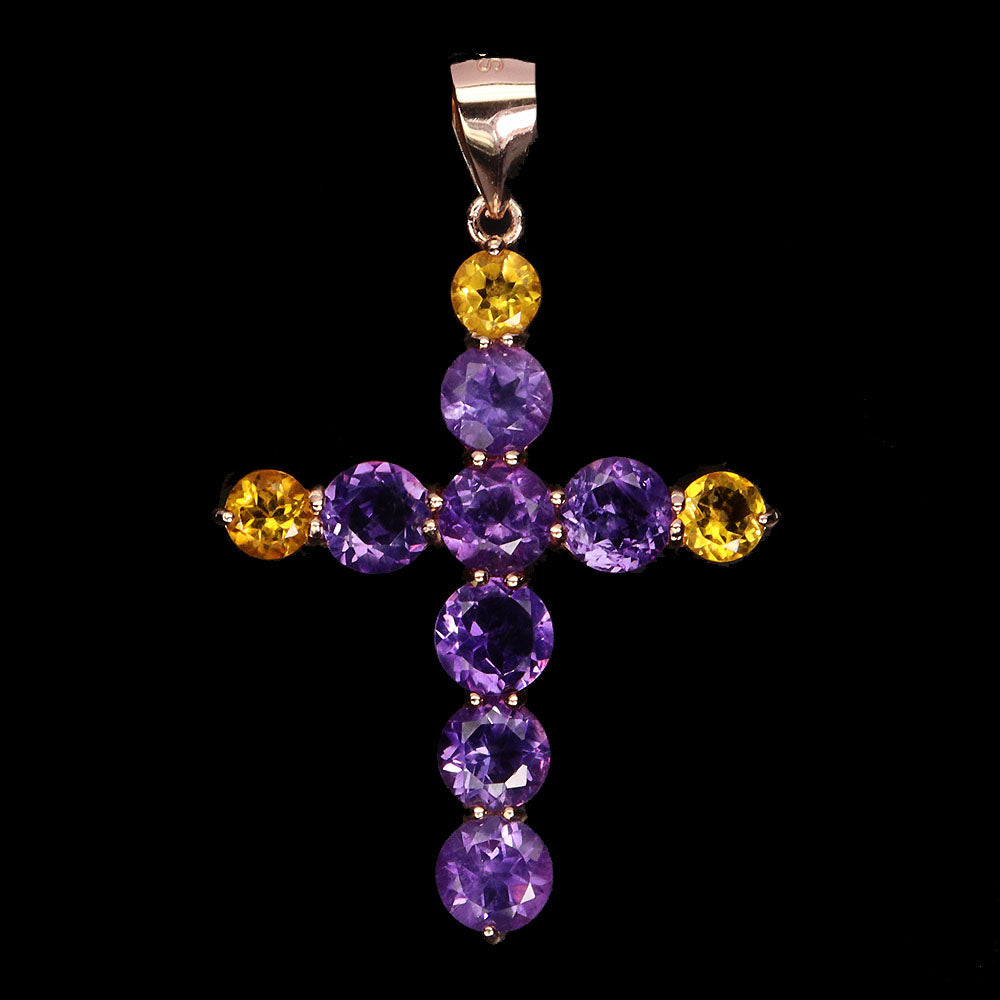 925 Sterling Silver Pendant Round Amethyst 5mm Citrine Cross Gemstone Jewelry