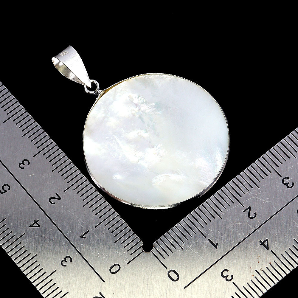 925 Sterling Silver Pendant Round Mother Of Pearl 29mm Natural Gemstone Jewelry
