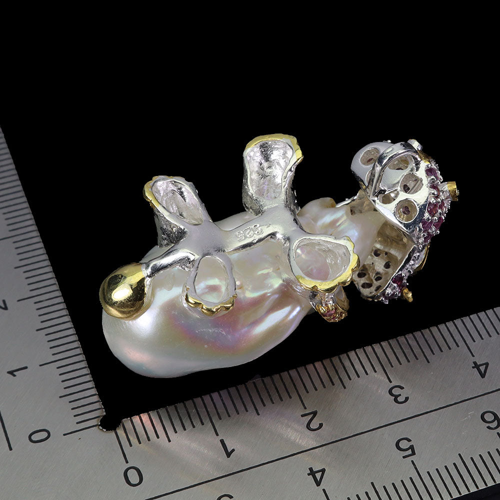 925 Sterling Silver Pendant Round Rhodolite Pearl Hippocampus Gemstone Jewelry