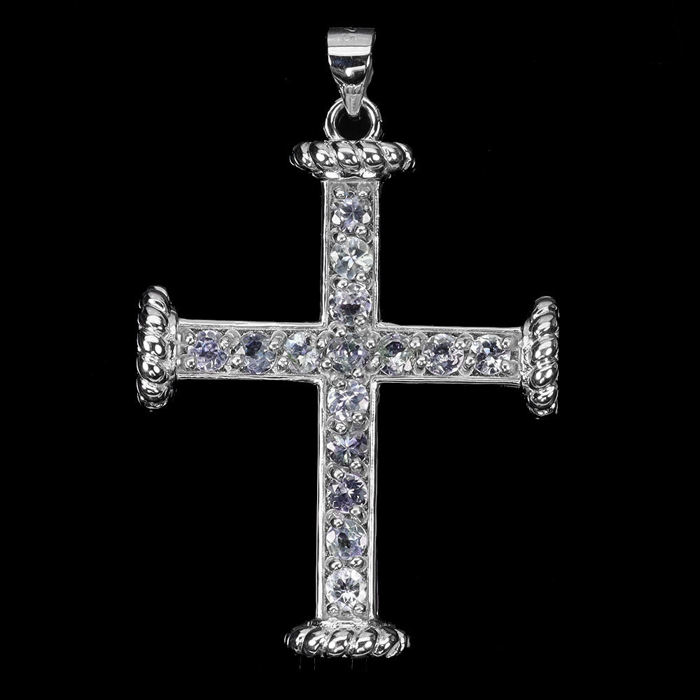 925 Sterling Silver Pendant Round Tanzanite 2.5mm Cross Natural Gemstone Jewelry