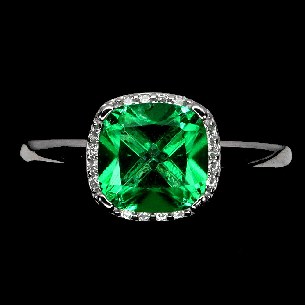 925 Sterling Silver Ring Cushion Green Topaz 8mm Natural Gemstone Jewelry Sz 7.5