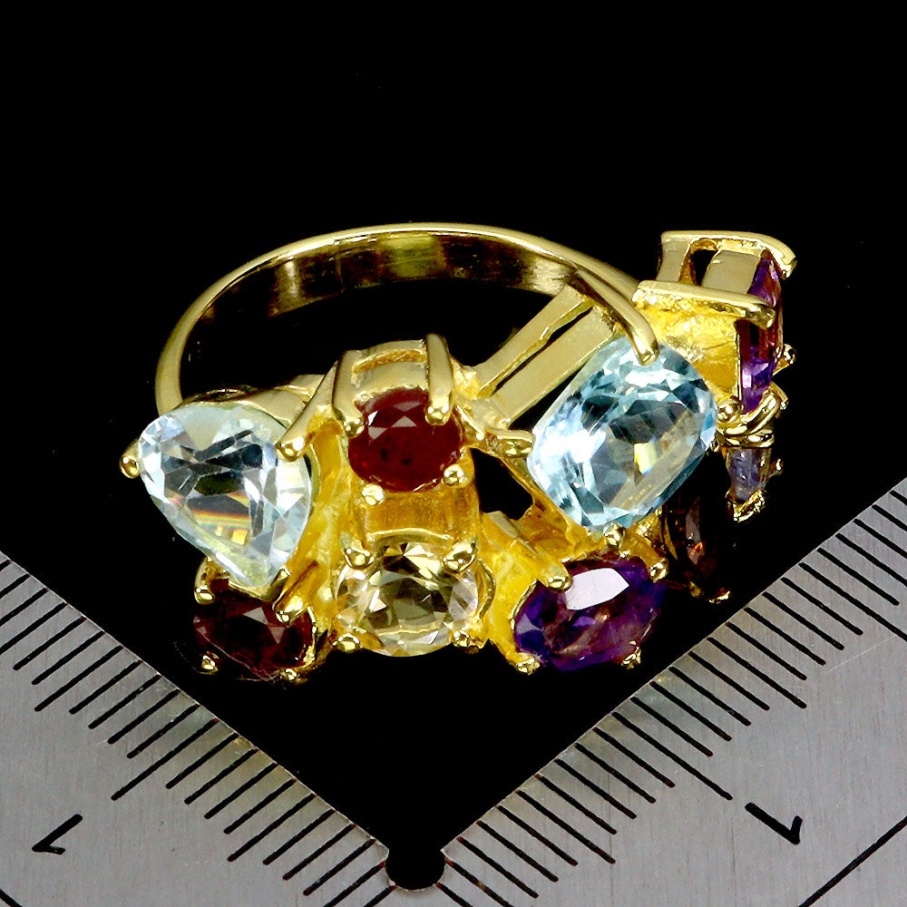 925 Sterling Silver Ring Cushion Topaz Amethyst Citrine Ruby Gemstone Jewelry 7