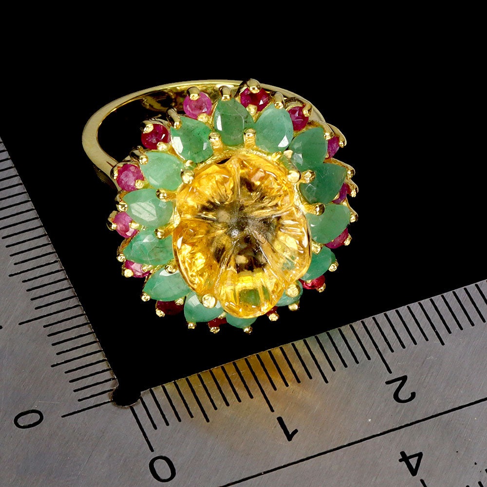 925 Sterling Silver Ring Flower Citrine 13x10mm Emerald Ruby Gemstone Jewelry 7