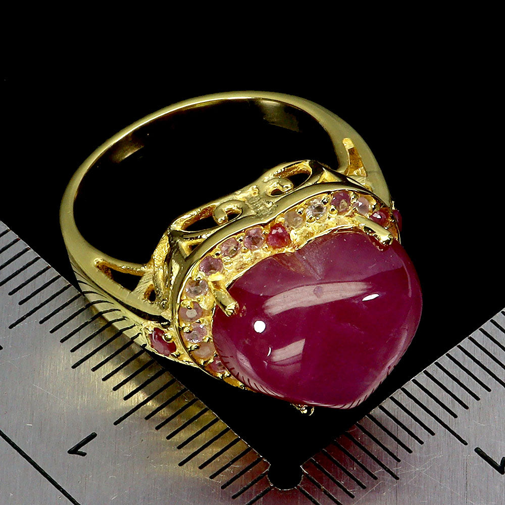 925 Sterling Silver Ring Heart Ruby 13x11mm Natural Gemstone Jewelry Size 7