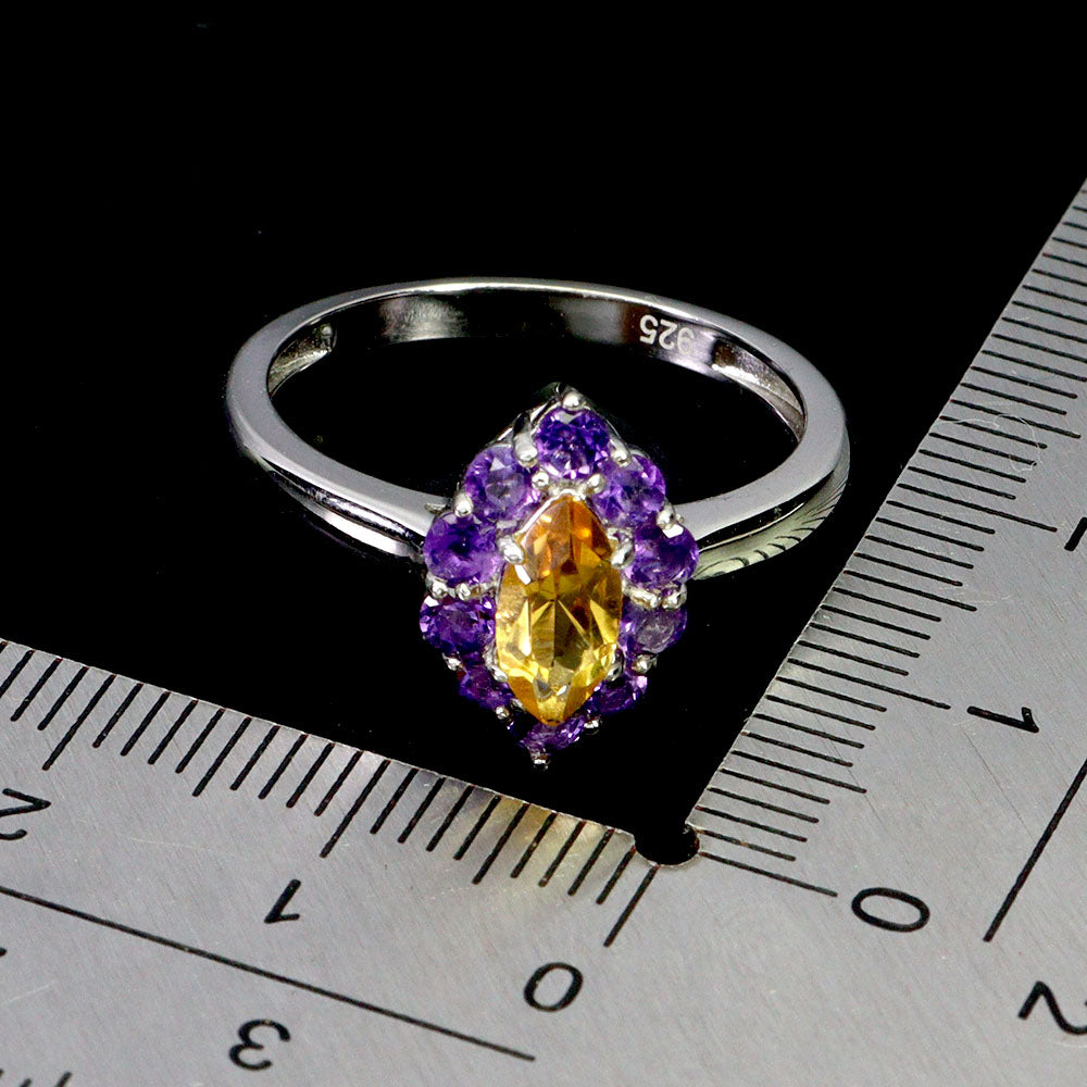 925 Sterling Silver Ring Marquise Citrine Amethyst Gemstone Jewelry Size 8